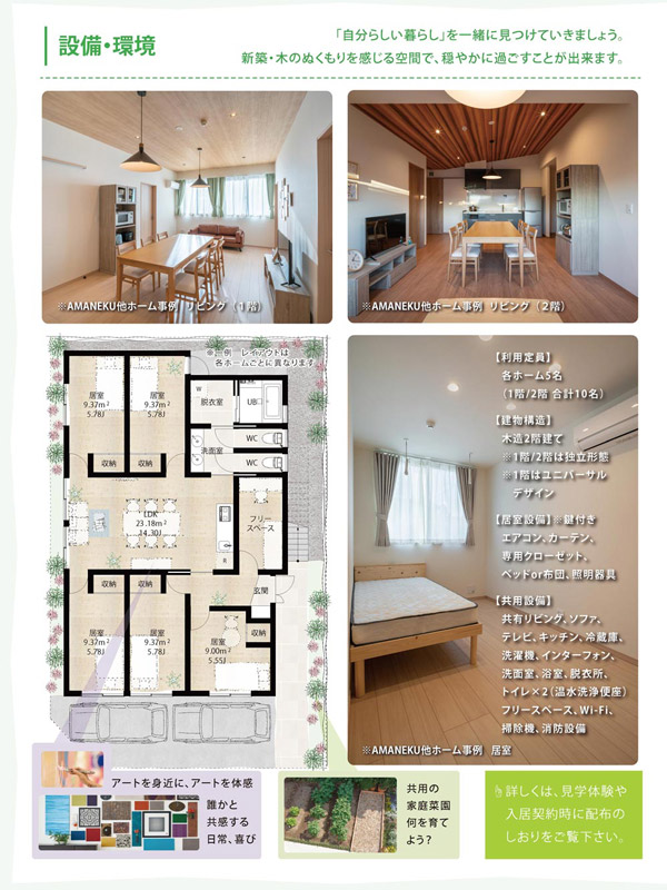 AMANEKUの運営には障がいのある当事者も携わり、ホームごとに障がい特性や毎日の生活に配慮したコンセプトを設定しています。